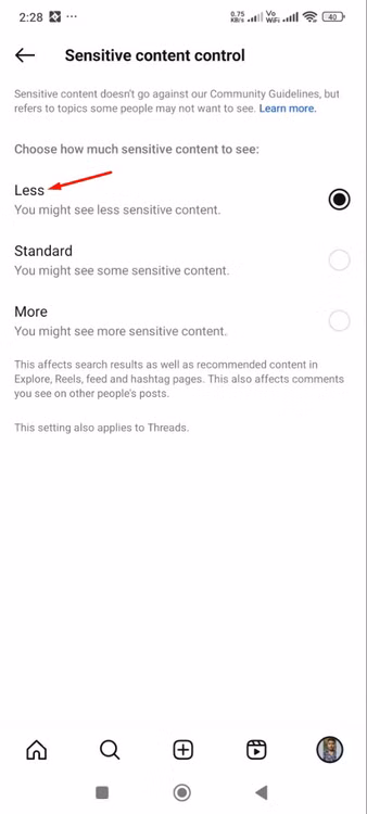 Want to reduce NSFW or borderline content? Tap “Sensitive Content” and choose “Less.”