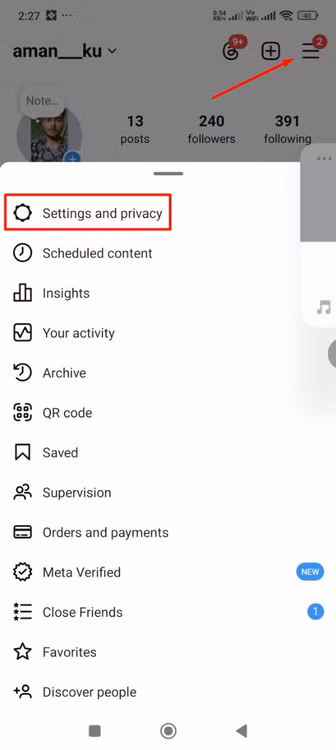 1. Go to your profile and tap the menu icon (three lines in the top-right).