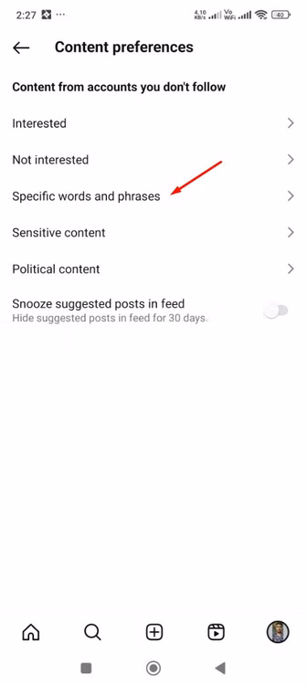 Don’t want posts that mention certain topics? Tap this option, enter the words or phrases you want to avoid, and hit “Done.” Instagram will filter out posts containing those terms.