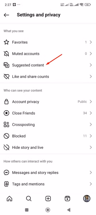 If you want more control over what Instagram suggests, you can change your Suggested Content settings to block out certain types of posts or topics altogether.